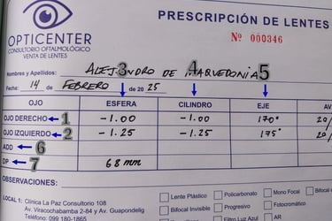 Es recomendable que, ante cualquier duda sobre la interpretación de su receta, consulte con un profesional de la salud visual para asegurar la selección adecuada de sus lentes.