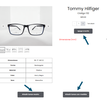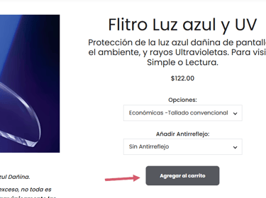 2.Añade al carrito y selecciona lunas neutro, o con graduación