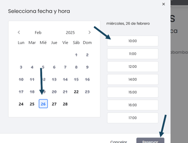 1. Selecciona la fecha y hora que más te convenga.